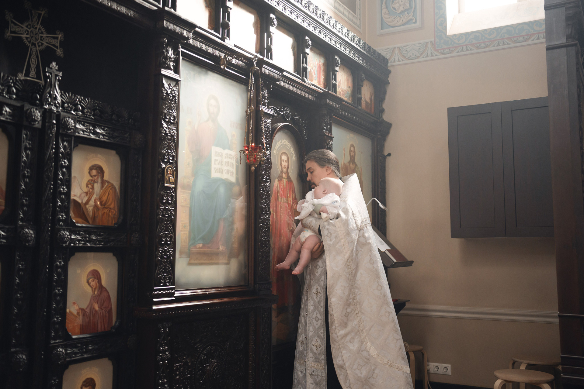 Крещение малыша в Храме Воскресения Словущего в Даниловской Слободе